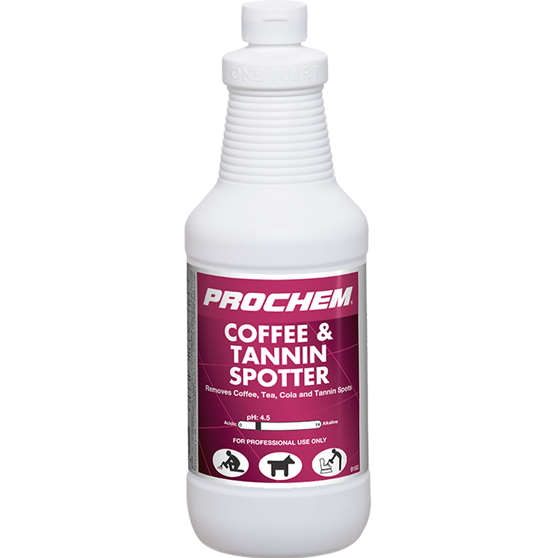 Prochem Coffee and Tannin Spotter is the superior choice for removing to coffee, tea, cola and other tannin spots and stains from synthetic fiber carpet and upholstery.