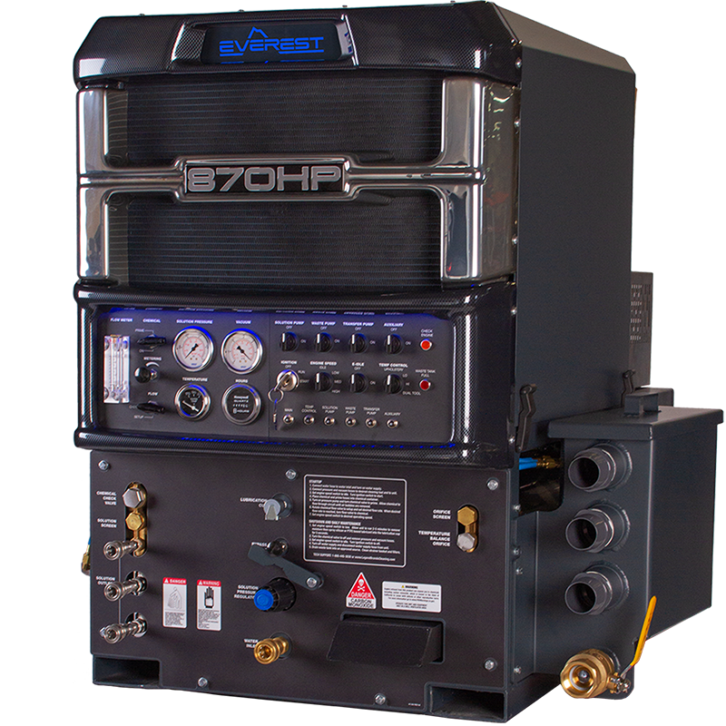 The Everest 870 HP is our most powerful cleaning and extraction truckmount - and 50-state CARB-compliant. It pairs a liquid-cooled fuel-injected Kubota 4-cylinder engine with a Eurus vacuum blower to deliver industry-leading heat, extraction performance and durability. Plus, 4-setting thermologic control regulates solution temps and adjusts engine speed for maximum fuel and cleaning efficiency.