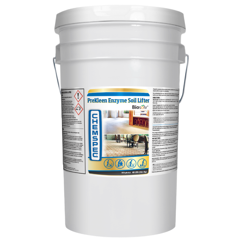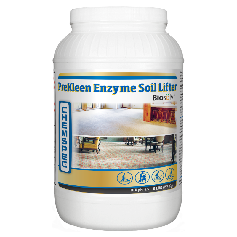 PreKleen Enzyme Soil Lifter with Biosolv works optimal as a prespray, spotter and booster that removes oil-based spots and stains. Universal prespray for carpets and upholstery - no scrubbing required.